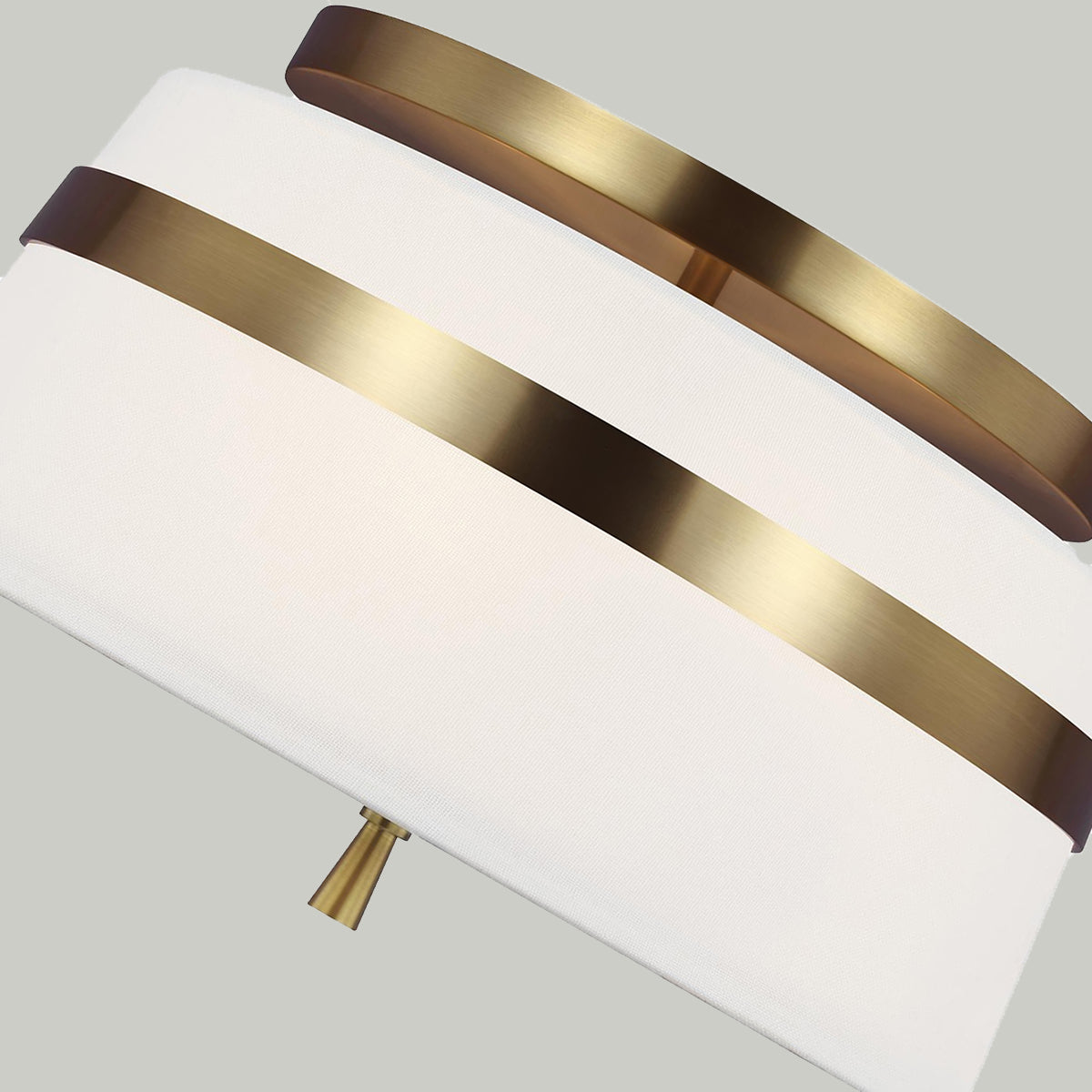 The simple, transitional Cordtlandt pendant by Alexa Hampton and flush mount series features a perfectly proportioned conical hanging shade with an optional metal band cinching it at the waist. Available in an Aged Iron, Burnished Brass or Polished Nickel finish.