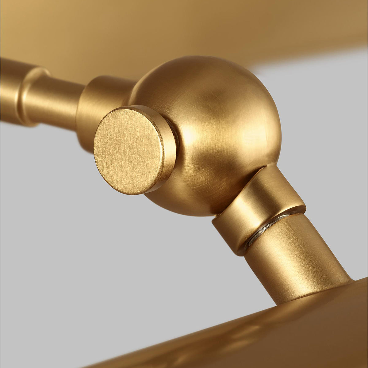 Designed by Chapman & Myers to be highly versatile in their application, at home in any interior. Classic half round pharmacy shades are mounted to a cylindrical metal stem with stepped detailing. The picture lights have architecturally inspired medallions where the arms mount to the rectangular backplate.
