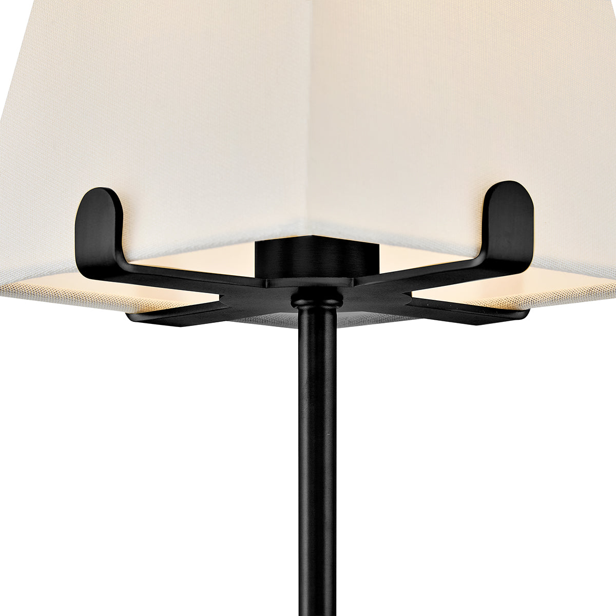 Tall and minimalist Benton’s simply chic silhouette easily complements any space or décor style. White hardback linen shades are supported by a slim stem and prongs in a Black or Lacquered Brass finish.