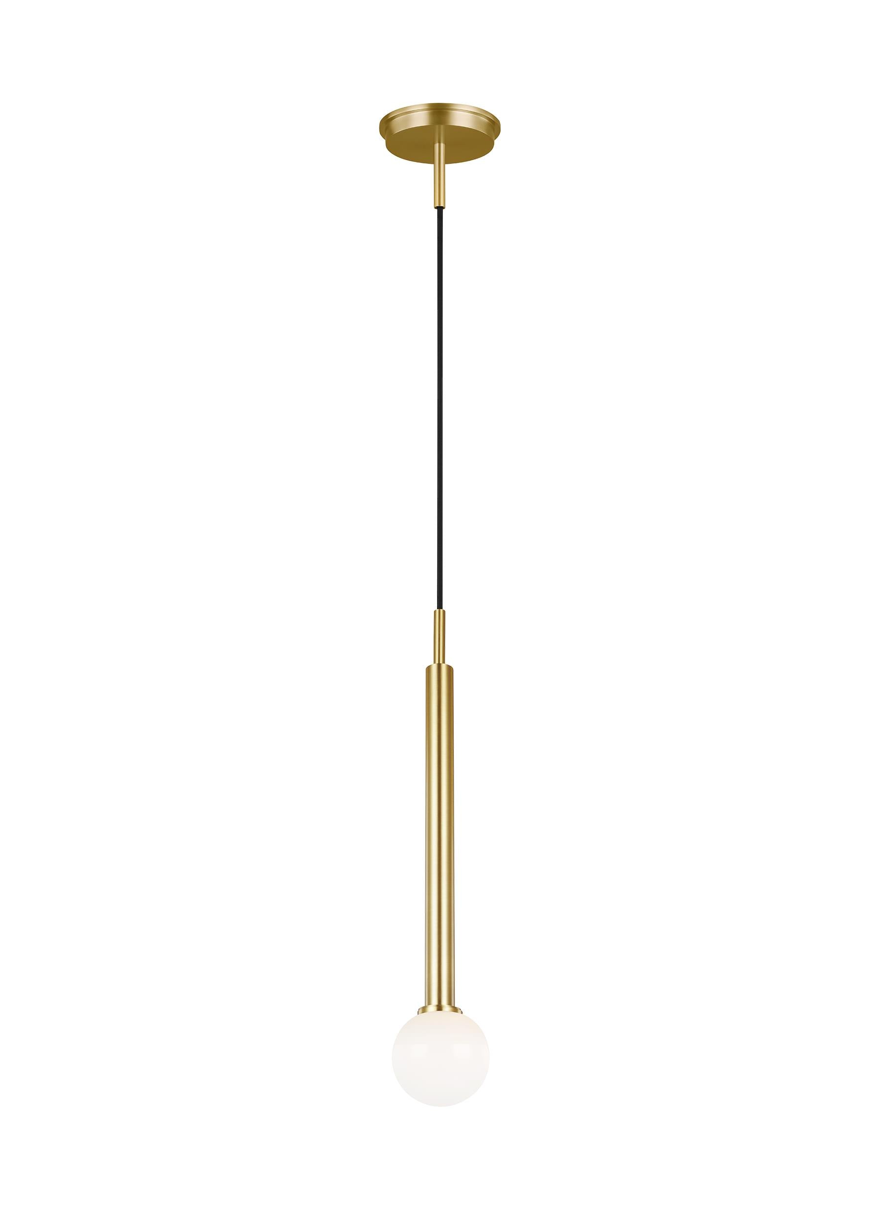 Nodes pendant is minimal yet bold, highlighting Kelly's distinctive juxtaposition of mixed-materiality and curvilinear form. Light radiates from milk glass globes set against metal discs. All fixtures can be used or without the discs.