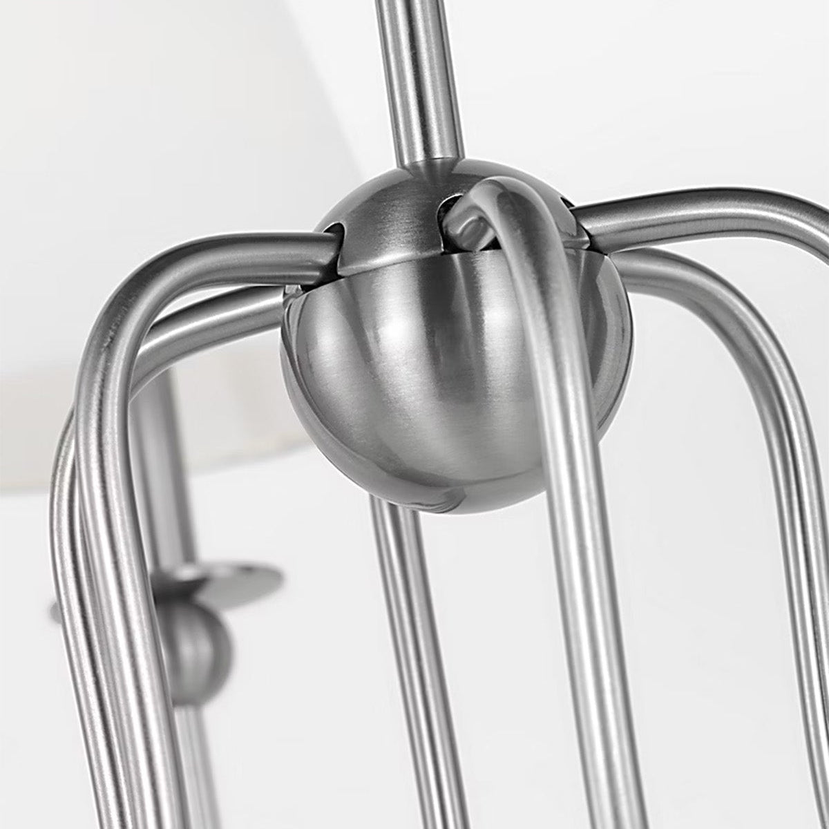 The Elsay Chandelier from Visual Comfort Studio, designed by Drew & Jonathan Scott, updates traditional lighting with gracefully curved arms that sweep out from a central sphere. The J-shaped arms create a fluid, open profile that gives this fixture an airy quality despite its substantial presence. Each arm culminates in a linen fabric shade that diffuses light pleasantly throughout dining areas, entranceways, and living rooms. Small spherical details punctuate the design, adding subtle visual interest.