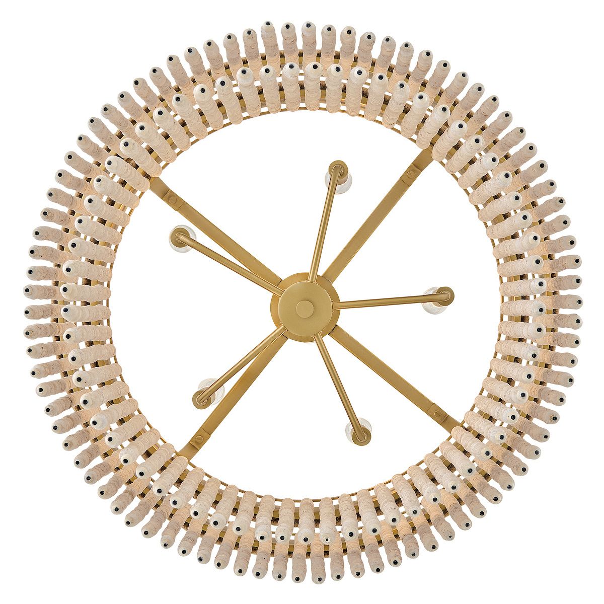Indra blends coastal styling with an elegant transitional silhouette to fill your space with a naturally inspired atmosphere. A hand-strung curtain of stacked, taupe wooden beads diffuses warm illumination, while a frame hand-wrapped in natural fiber jute rope adds a touch of organic texture to your décor. Convertible into a semi-flush mount.