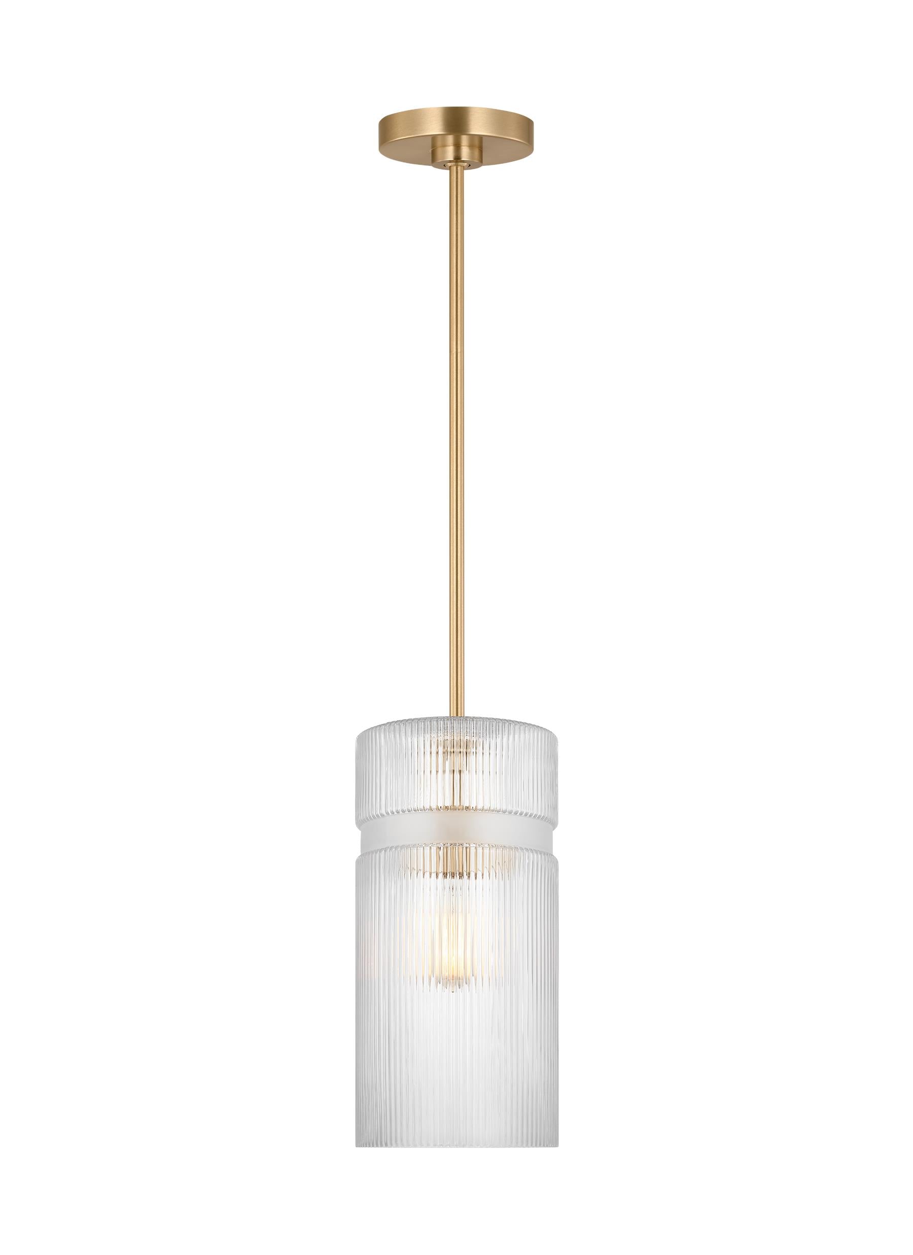 Satin Brass Finish Clear Ribbed Glass Shade