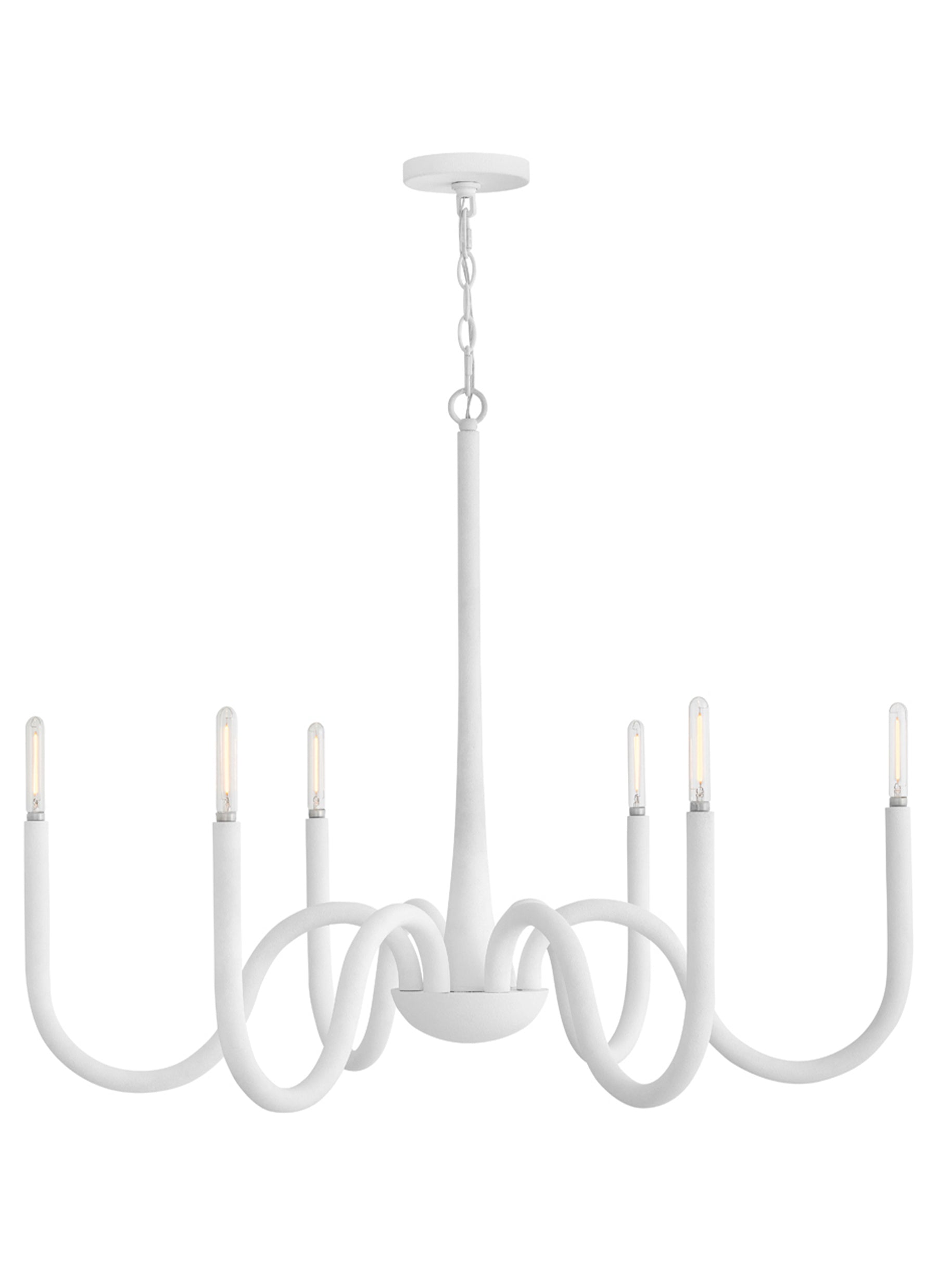 A breath of coastal freshness, Maris effortlessly complements any living or dining space. Exaggerated, curved arms with exposed candelabra lamps radiate from Maris's center, evoking a formal silhouette. A white Textured Plaster finish imparts a chic, Californian feel.