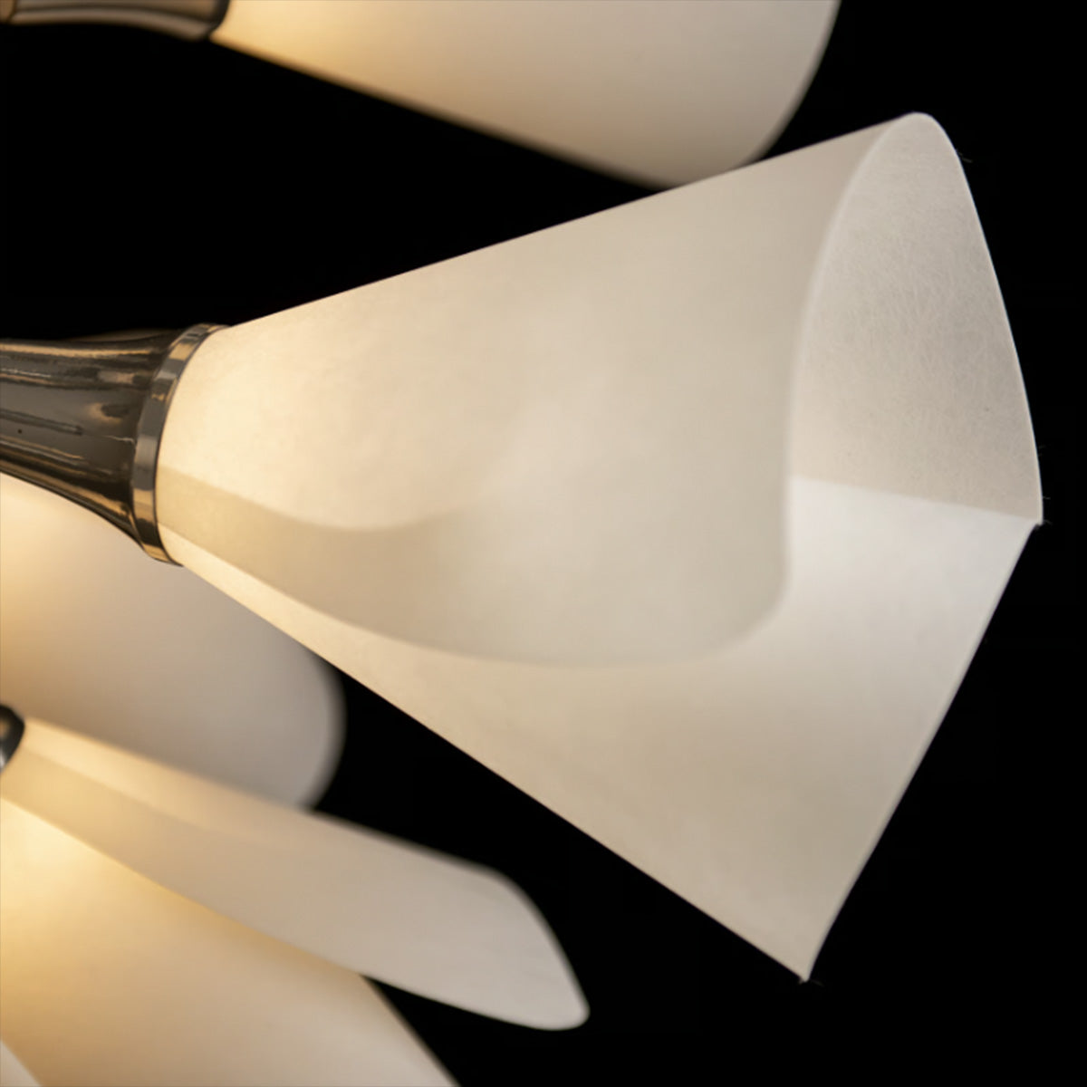 Reminiscent of a delicate, round wedding bouquet, the 2021 Mobius Orb Pendant fills the space with its soft beauty. An attention-getter, the 16-Light Orb is like a breath of springtime with its light, airy feel. Spun Frost, textured paper shades resemble flowers in bloom. Also available in multiple configurations, including the new 2021 Mobius 12-Light Semi-Flush.