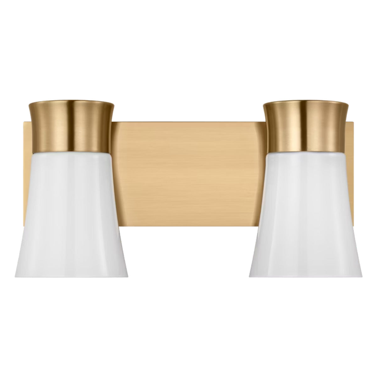 The Roy 2-Light Vanity by Drew & Jonathan features two softly flared milk glass shades that deliver a warm, ambient glow. Paired with a minimalist square backplate, this design creates a chic, modern look. Available in Satin Brass, Midnight Black, or Chrome, and damp-rated for use in steamy spaces, it’s a perfect fixture for contemporary bathrooms, offering both style and function.