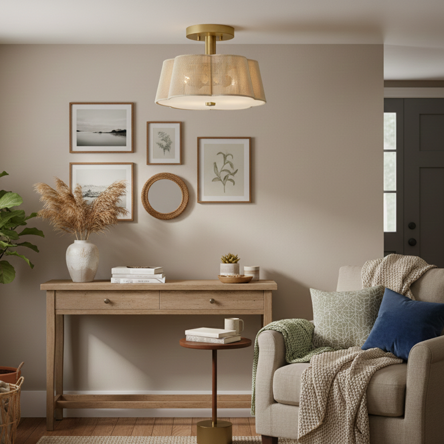 Natural Fiber Cord shade w/ Etched glass diffuser