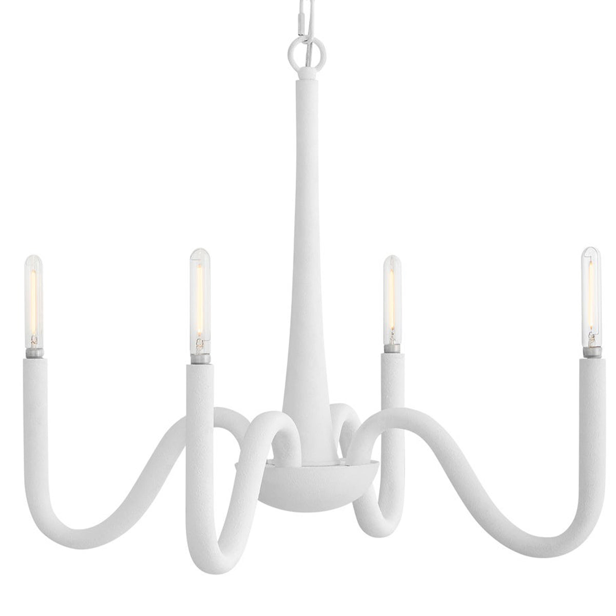 A breath of coastal freshness, Maris effortlessly complements any living or dining space. Exaggerated, curved arms with exposed candelabra lamps radiate from Maris's center, evoking a formal silhouette. A white Textured Plaster finish imparts a chic, Californian feel.