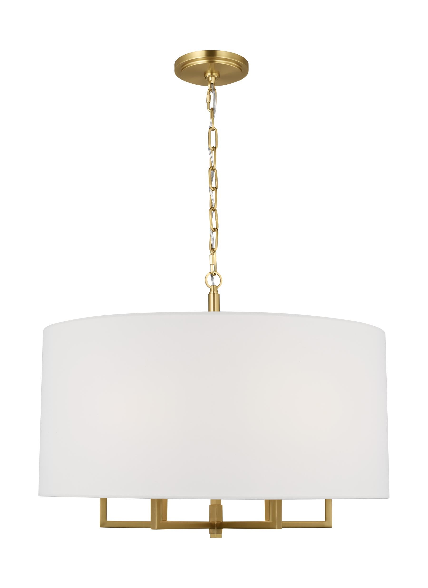 New York designer Thomas O'Brien has infused a Slavic vibe into a traditional Hamptons collection for Visual Comfort studio. Danica features a 6-light chandelier with a single White linen hanging shade, as wall as a wall sconce, linear chandelier and larger 4-light chandelier in an Aged Iron or Burnished Brass finish.