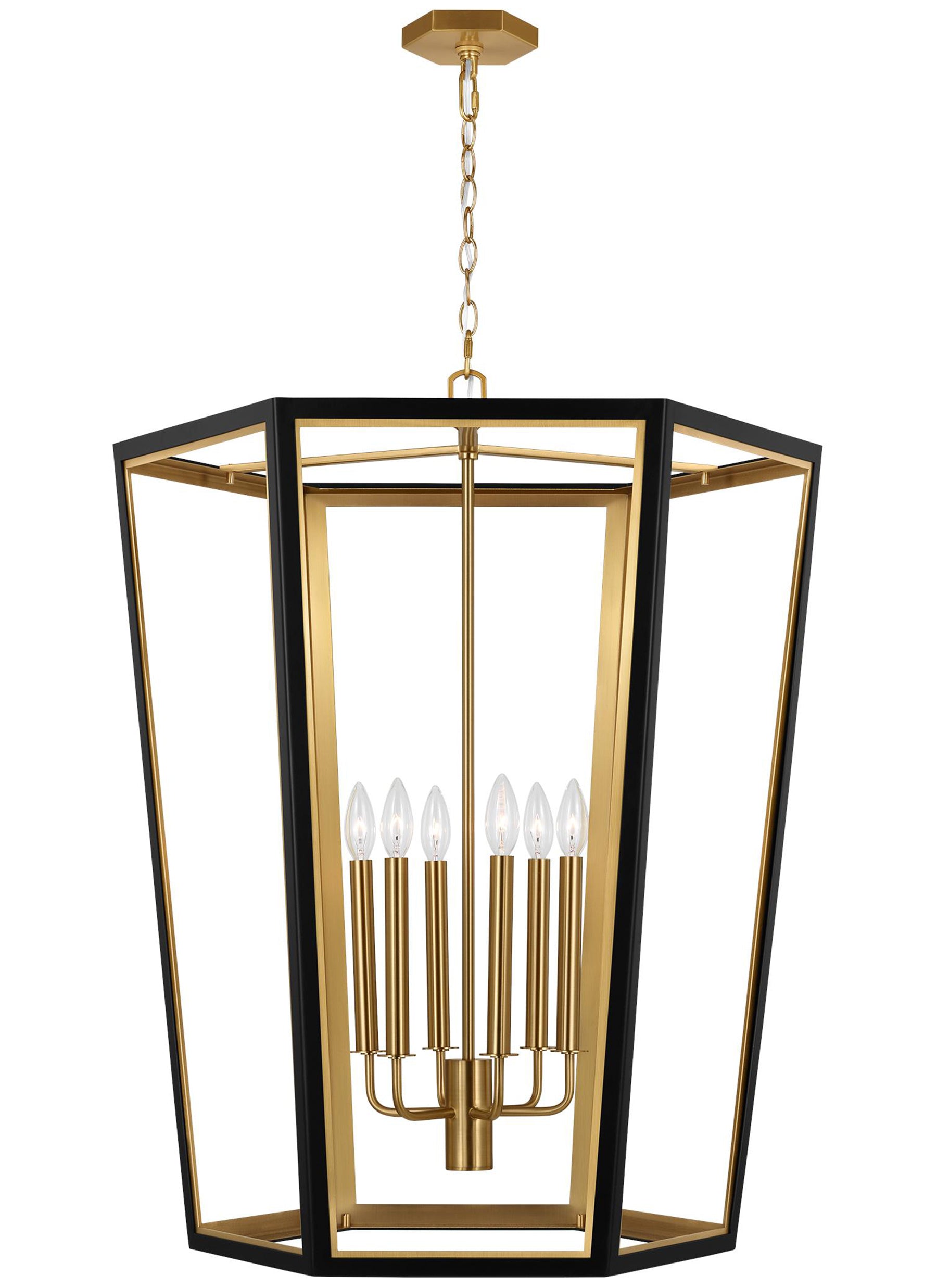 Alex Hampton designed the Curt collection as a modern take on an antique lantern. Elegantly crafted of steel with a Matte White or Midnight Black finish and accented with golden details. A stunning Hexagon shaped hub adds drama to the design.